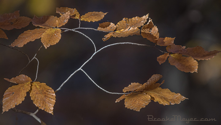 The copper colored leaves of this mature American Beech are like gems, set against a field of rich, new, green, immature versions. And provide a proscenium for a pair of Grey Squirrels, in a frantic arboreal chase.