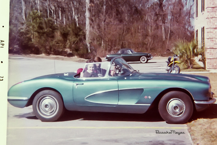 Polaroid – in front of my first apartment. Back from my second patrol aboard a Fleet Ballistic Missile Submarine. Me and my Mom in a newly purchased, well used, 1960 Corvette. Two years later, I had it right.