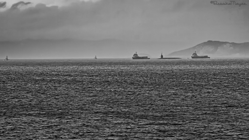 Made this photograph in September of 2009, on the back end of a wonderful voyage aboard the Aurora Explorer. The car ferry from Victoria to Seattle, via the Strait of Juan de Fuca, allowed me to be topside, something ex-Submariners find, astonishing. Saw this on the stern quarter. Big Boat – 560 ft vs the 425 ft Lafayette Class Polaris Boomer I was aboard. They’re sailing for a “Nuclear Strategic Deterrent Patrol” aka “Making a hole in the water for a few months”. In 2026, they’re still on Patrol.